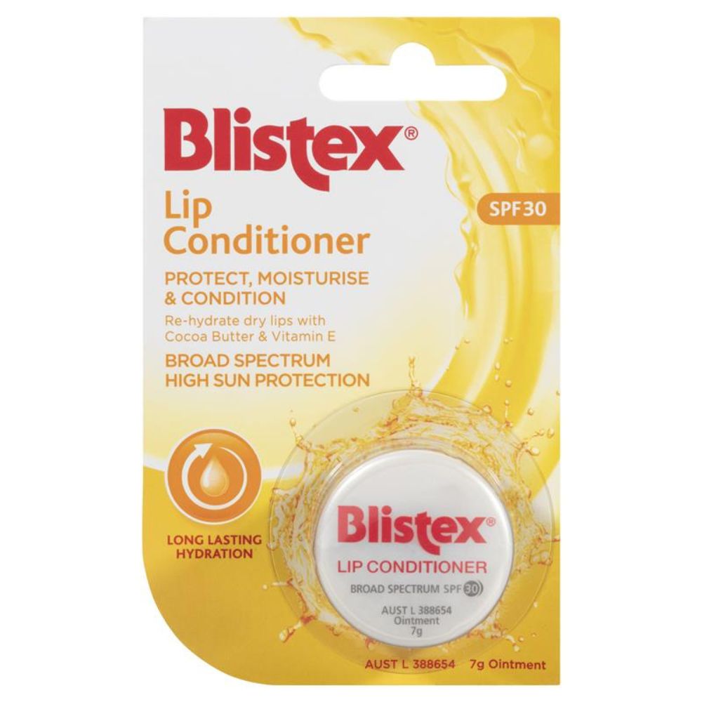 Blistex Lip Conditioner deeply moisturises and conditions lips to keep them soft and healthy every day. Enriched with cocoa butter and vitamin E, it helps re-hydrate dry lips while providing long-lasting moisture. Broad spectrum SPF 30 protects lips from harmful sun exposure.