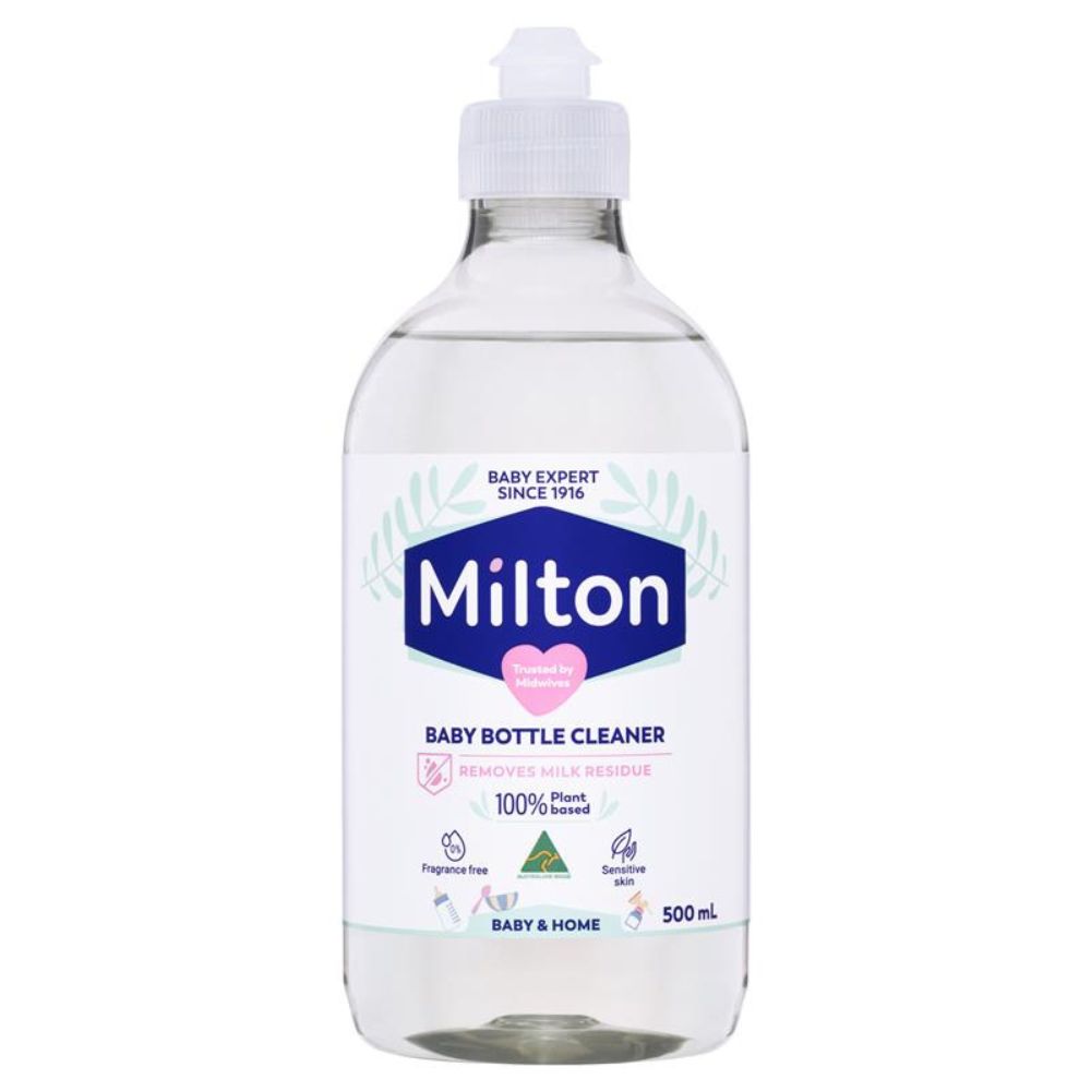 Milton Baby Bottle Cleaner is a 100% plant-based, biodegradable cleaning agent specially developed to remove milk residue that can promote bacterial growth. Clinically tested and gentle on sensitive skin, it effectively cleans baby bottles, teats, and breast pump parts, as well as other family items. Fragrance-free, colouring-free, paraben-free, and packaged in recyclable materials.