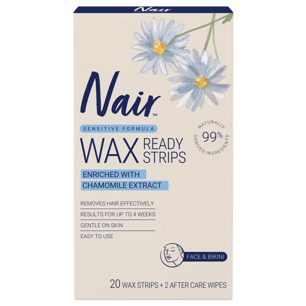 Nair Natural Mini Wax Strips offer quick, precise hair removal for the face, underarms, and bikini area. Made with 99% naturally derived ingredients and a sensitive-skin formula, these ready-to-use strips remove hair as short as 2mm and leave skin smooth for up to 4 weeks.