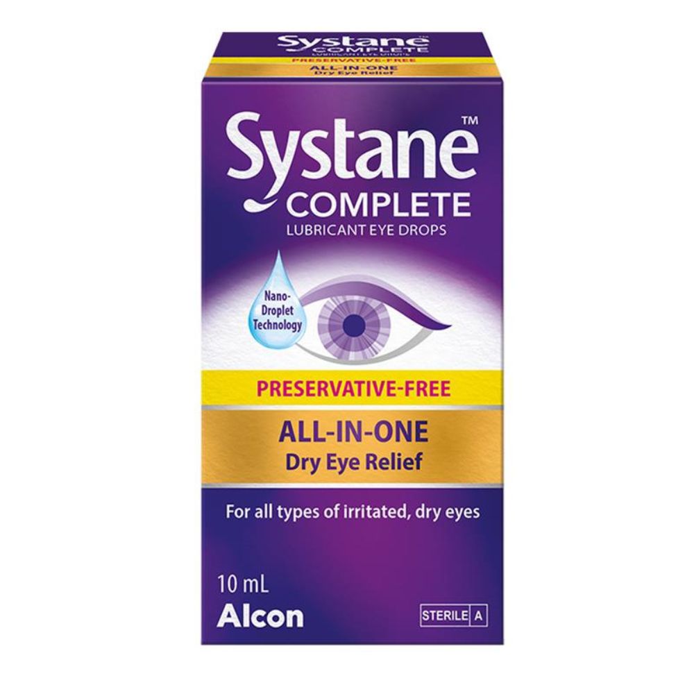 Systane® COMPLETE Preservative-Free eye drops are designed to moisturise and relieve dry, irritated, tired, or watery eyes. This all-in-one formula replenishes all layers of the tear film using advanced technology for long-lasting comfort, with relief lasting up to 8 hours. The preservative-free multi-dose bottle with PureFlow™ Technology ensures safe and convenient use. 10mL bottle for temporary dry eye relief.